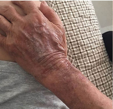 常因急性、亚急性湿疹反复不愈转为慢性湿疹;亦可开始不明显,因经常搔抓、摩擦或其他刺激,以致发病开始时即为慢性湿疹。其表现为患处皮肤浸润肥厚,表面粗糙,呈暗红色或伴色素沉着,皮损多为局限性斑块。