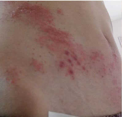 皮疹单侧和按神经节段分布,集簇性疱疹,疼痛