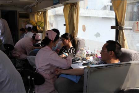 2016年4月10日上午,为缓血荒,太原肤康中医皮肤病医院举行了一次大型献血活动。