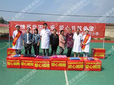 (太原肤康中医皮肤病医院志愿者助学捐赠现场合影)