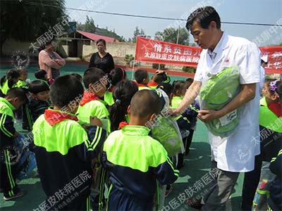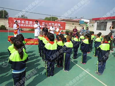 9月22日, 太原肤康中医皮肤病医院志愿者服务队携手太原电视台《生活享当当》记者,深入娄烦县赤土华村小学,与这里的贫困、留守儿童进行了一次面对面的交流,为他们带去了爱心物资与学习用品。