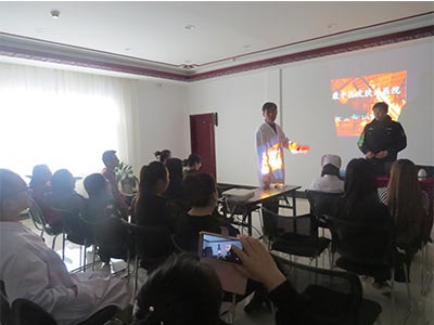 杨教官利用图片资料和视频资料,讲述了近期的几场火灾,一个个真实案例让人唏嘘不已。杨教官用生动的事例、血的教训提醒大家,消防安全不能马虎,要杜绝火灾事故的发生,在任何时候消防安全意识这根弦不能有丝毫放松。