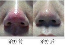 鼻赘期:鼻端部形成紫红色结节呈膨大肿瘤状,皮肤表面凸凹不平,毛细血管扩张明显,毛囊口也明显扩大,可挤压出白色粘稠皮脂分泌物。
