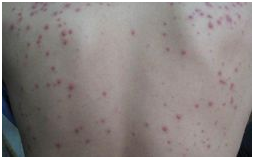 毛囊炎治疗两个疗程后:皮肤丘疹、脓包逐渐萎缩消失,破损的疹包开始愈合。