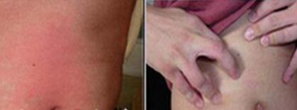 第二天,小李发现肚子上发出了几个小红块,特别痒。一开始以为是普通蚊子的叮咬,没当回事。等到第二天红块数量变得更多了,而且痒得特别很,一直消不下去。渐渐红块面积扩大,肚皮都红满了,着实把小李痒的团团转。小李本来有点肥胖,痒的时候挠起肚子,看起来特滑稽。