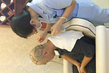 第二步:激活毛囊 生出新发。通过中药口服外用、毛囊激活仪等物理治疗配合,迅速打通毛囊堵塞部位,激活休眠毛囊、促使毛母细胞大量再生。15天左右时间,通过治疗,可见柔软的萌发出现。