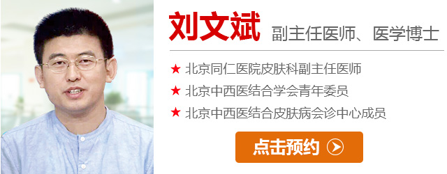 刘文斌副医生医师自医学博士毕业以来,一直就业于首都医科大学附属北京同仁医院皮肤科,并任职北京中西医结合学会青年委员。刘副医生在疑难病的诊疗及白癜风治疗等方面积累了丰富的经验。并先后在科研发表SCI论文两篇,国内核心期刊十余篇,副主译论著一部,参编论著5部。