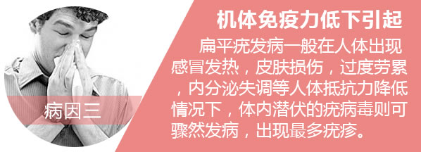 医生还表示,当局部被搔抓时,扁平疣疣体表面和正常皮肤可产生轻微的破损,这时病毒很容易被接种到正常皮肤上而产生新的疣体。