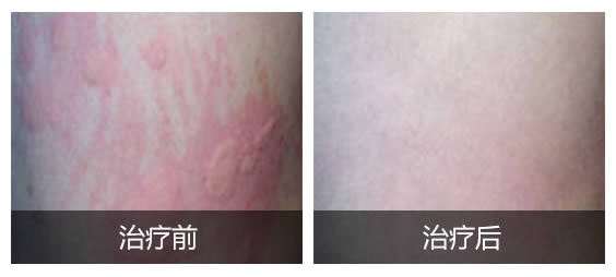 治疗前:陈先生的腿上有许多红斑,一团一团的,奇痒难忍