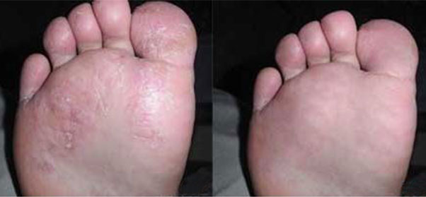 偏方治疗手足藓毫无根据,不仅无法改善,错治加重病情,加大治疗难度而且容易并发体癣、甲沟炎、灰指甲等疾病。