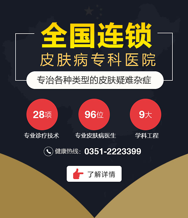 太原肤康中医皮肤病医院引进多项前沿技术,其中突出的包括“中西医结合五联理疗(痤疮)”、“汉方小分子激活疗法(脱发)”、“中西医五维净血祛癣疗法(牛皮癣)”等28项技术;针对痤疮、脱发、牛皮癣、白癜风等做全面、准确、细致、安全的诊断和治疗,确保治疗的有效、安全、不反复等。