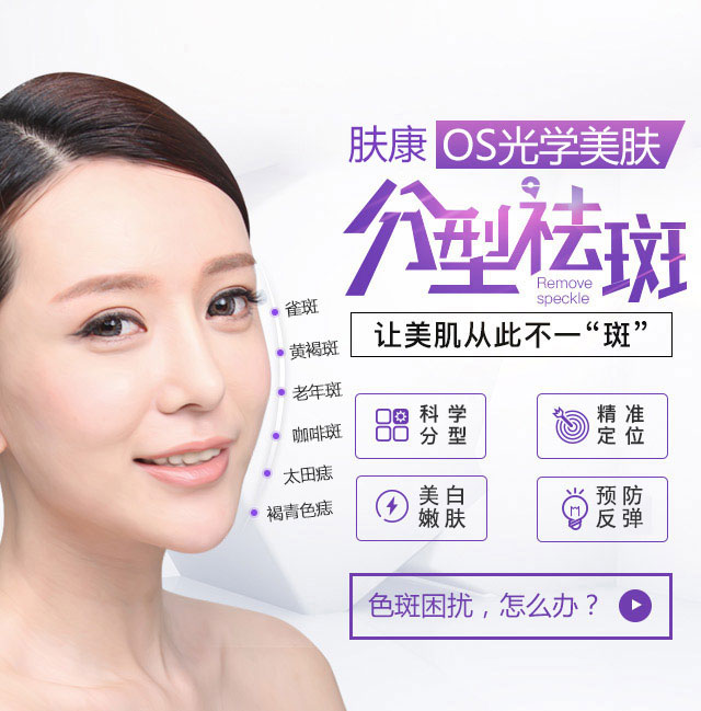 肤康依据皮肤学原理,对色斑进行正规检测和智能分型,复合祛斑,定制多种组合祛斑方案,一对一施治,消解色斑。